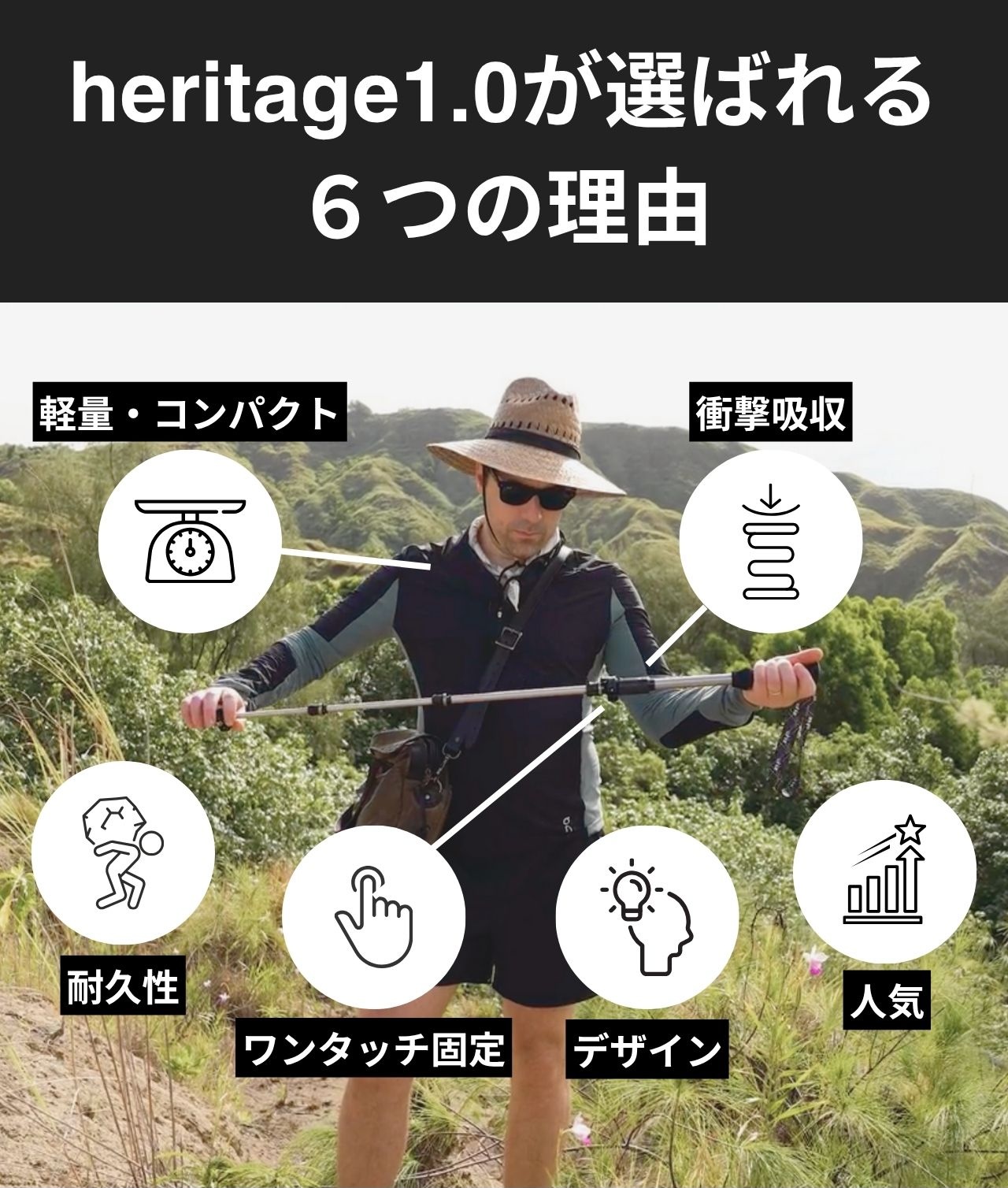 信頼できるウォーキングアシスタント、heritage 1.0 を選んで、ハイキングやさまざまなアウトドアアクティビティを楽しんでください。