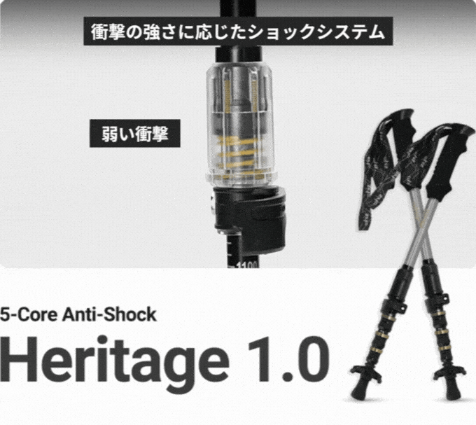 heritage 1.0は、5つのコアを適用することで耐衝撃機能を備えたトレッキングポールです。